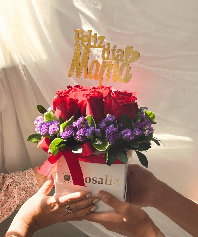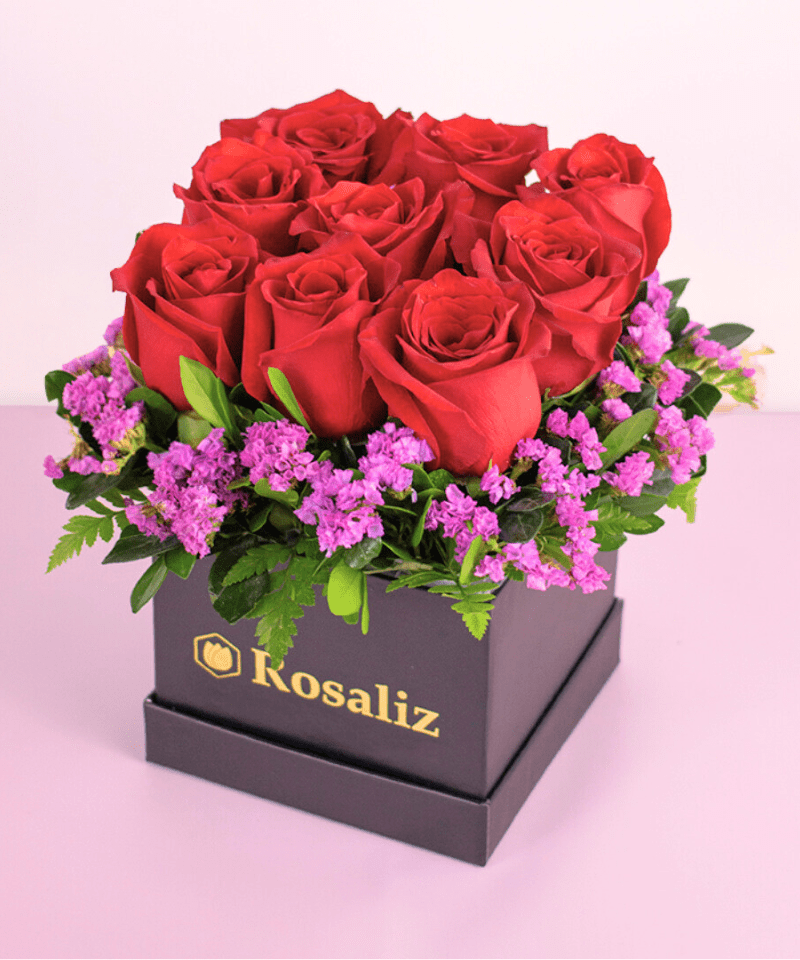 Box de 9 rosas rojas y follaje